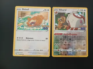 Due carte Pokémon della collezione Pokémon GO. - Carta Pokémon Base: Bidoof (PS 70) - Carta Pokémon Fase 1: Bibarel (PS 110) - Entrambe le carte sono in italiano e in perfette condizioni.