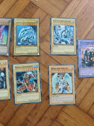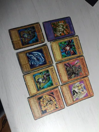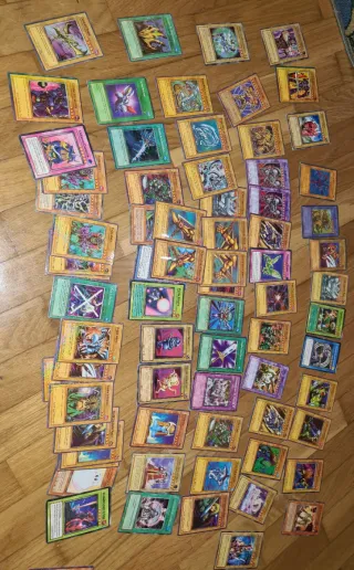 Lotteria di carte Yu-Gi-Oh! per collezionisti e giocatori. In diverse condizioni, chiedete per quella che vi interessa. Include carte iconiche come il Mago Oscuro e il Drago Bianco Occhi Azzurri. Varietà di mostri, incantesimi e trappole. Ideale per espandere la tua collezione o per duelli.