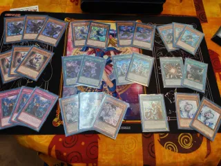 Set di carte Yu-Gi-Oh! per collezionisti e giocatori. - Varietà di carte mostro, incantesimi e trappole. - Alcune carte potrebbero essere in buste protettive. - Ideale per espandere la tua collezione o per duelli.