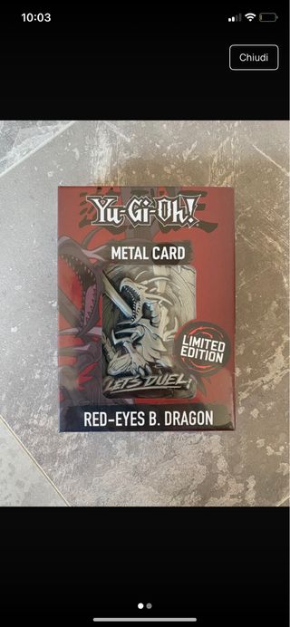 Carta metallica Yu-Gi-Oh! del Red-Eyes B. Dragon. - Edizione limitata. - Let's Duel! inciso.