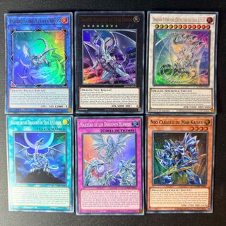 Collezione di carte Yu-Gi-Oh! del tema Dragon Ruler. 3 segrete e 3 ultra rare. - Redox, Dragon Ruler of Boulders - Tempest, Dragon Ruler of Storms - Blaster, Dragon Ruler of Infernos - Reactan, Dragon Ruler of Peaks - Lightpulsar, Dragon Ruler of Alixes - Stream, Dragon Ruler of Ravens