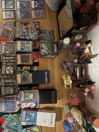 Vendo lotto di carte Yu-Gi-Oh! con diversi mazzi; I primi due deck fanno parte del box collezzione yugi e kaiba e sono subito stati imbustati: Mazzo Drago bianco occhi Blu(Completo); Mazzo Mago Nero(completo); Mazzo Monarca(Completo); Mazzo Link e Drago(Starter Deck); Drago alato di ra e Slifer; Carte Fusione,Xyz e magia Gold; Tappetino e Deck Box visibili in foto.