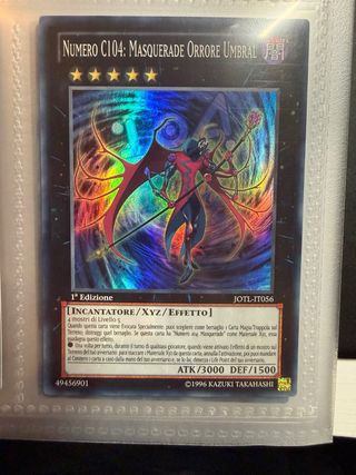 Carta Yu-Gi-Oh! Numero C104: Masquerade Orrore Umbral. - Edizione: 1ª Edizione - Tipo: Incantatore/XYZ/Effetto - Livello: 5 - ATK: 3000 - DEF: 1500 - Codice carta: JOTL-IT056
