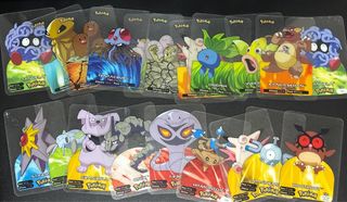 Lotto di carte Pokemon trasparenti con diversi personaggi. Lamin cards 2005 e 2006 in italiano Presentano graffi - Tangela - Tentacruel - Geodude - Oddish - Weepinbell - Kangaskhan - Starmie - Granbull - Onix - Arbok - Hitmontop - Magnemite - Hoothoot