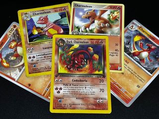 Set di 5 carte Pokemon con protagonista Charmeleon. Dark charmeleon prima edizione - Charmeleon (80 PV) - Charmeleon (70 PV) - Dark Charmeleon (50 PV) - Charmeleon (STAGE 1)