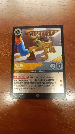 Carta del personaggio Pluto, con abilità Affidabile. - Costo: 6 - Forza: 2 - Volontà: 7 - Tipo: Classico, Alleato - Abilità: Aiutante Felice