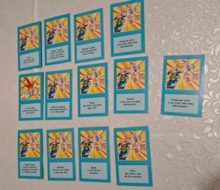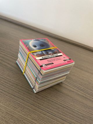 Collezione personale composta dalle carte full art presenti nell'album e 3 mazzetti come da foto, album non incluso. I 4 mazzi a tema sono composti da carte comuni e non presentano ripetizioni e sono costituiti principalmente da carte unità più qualche carta brillante visibile nell'ultima foto. i temi dei mazzetti sono: - mazzetto repubblica - mazzetto separatisti - mazzetto underworld Presenti molte altre carte nel mio profilo come One Piece, Pokémon, Magic, Yugioh, Lamincards sia di dragonball che di pokemon e carte a tema baldur's gate o dnd D&D (dungeons and dragons) Vendo con la formula visto, piaciuto, venduto.