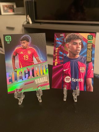 Vendesi coppia di carte Panini TC raffiguranti Lamine Yamal. - Carta Electric numero 162. - Carta New Sensation numero 253.