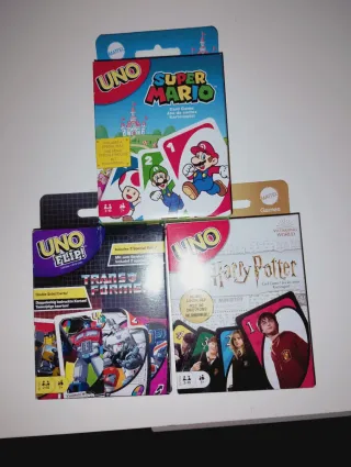 Vendo 3 mazzi di carte del gioco Uno con temi diversi.nuovi mai aperti 3 pacchi 7 euro - Uno Super Mario - Uno Harry Potter - Uno Flip! Transformers