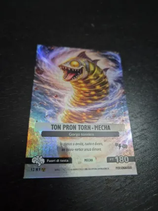 Carta Ton Pron Torn - Mecha dal gioco Gorgo tonnico. - In stanza si avvita, ruota e divora, un tonno-vortice senza dimora. - MECHA - PT 180 - PERSONAGGIO - 12 R1