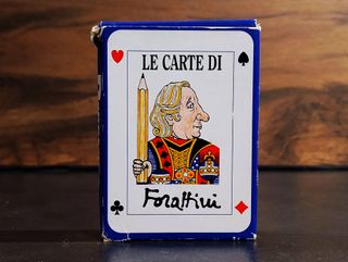 Carte da Poker Modiano plastificate disegnate da Giorgio Forattini per la rivista Panorama negli anni '90. Le carte raffigurano le caricature dei personaggi politici di quegli anni, così come l'artista era solito interpretarli. Troverete il presidente Cossiga e personaggi come Bossi, Andreotti, Spadolini e molti altri che potrete divertirvi a cercare di riconoscere. Il mazzo di carte è ancora nel suo cellophane originale, mai aperto. La custodia mostra qualche segno del tempo come da foto. - Giorgio Forattini - Carte da poker Modiano Forattini Plastificate