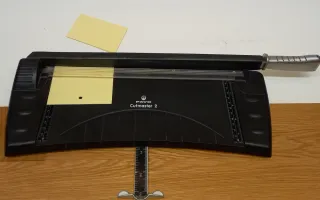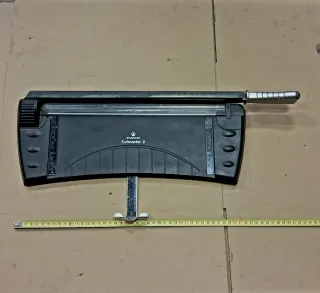 Taglierina a ghigliottina Pavo Cutmaster 2, ideale per tagli precisi. - Lama affilata per tagli netti. - Base in plastica resistente. - Righello integrato per misurazioni accurate.