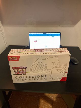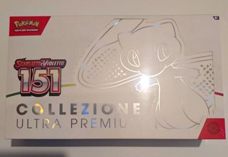 Splendida Collezione Ultra Premium del set 151 di Pokémon Scarlatto e Violetto. - Edizione italiana. - Contiene carte collezionabili Pokémon. - Illustrazione di Mew in rilievo.
