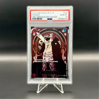 Selling this Shanks 3rd anniversary Silver from Carrying on his will set, in Japanese language PSA 10 graded, Gem mint condition The card purchased will be exact card pictured Safe packaging 📦 Shipping worldwide 🌍 For more photos or information feel free to contact us 👍 Tags: #charizard #blastoise #venusaur#pikachu #umbreon #eevee #espeon #luffy #flareon #jolteon #mewtwo #carta #carte #onepiece #pokemon #vmax #vstar #shiny #lugia #goldstar #graded #shining #secret #tcg #dragonball #lorcana #sar #sr #fullart #zoro #alternative #dracaufeu #10th #20th #25th #anniversary #charmander #mint #nearmint #masterball #rayqua