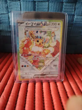 Carta Pokémon Eevee EX della serie Scarlet & Violet. - Numero carta: 224/187 - Rarità: SAR (Special Art Rare) - Tipo: Eevee EX - Caratteristica: Niji-iro DNA (DNA Arcobaleno) - Attacco: Quartz Shine - Illustratore: Natsuko Shoji
