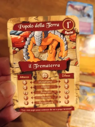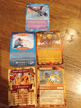 Lotto composto da 5 carte Gormiti. - Popolo dell'Aria: L'Oscuro Incantatore - Popolo del Vulcano: Lavion - Il Signore del Vulcano - Popolo del Mare: Medusantica - Popolo della Terra: Il Trematerra - Popolo della Terra: Il Mangiaterra