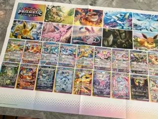 Poster promozionale Evoluzioni Prismatiche dedicato ai Pokémon. - Illustrazioni delle varie evoluzioni di Eevee. - Grafica colorata e accattivante.