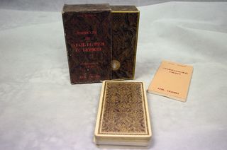 I Tarocchi della Rosa Sacra sono un bellissimo e vibrante mazzo di Tarocchi a cui è stato aggiunto un po' di simbolismo cabalistico alle opere d'arte colorate, ispirate alle vetrate medievali e alle icone bizantine. By Johanna Gargiulo - Sherman. AGMuller 1982. Rari, da collezione. Mazzo completo di 78 carte. Nell'insieme ben tenuti, normali segni di usura. Libretto non presente. Questa è la prima edizione, non la ristampa.