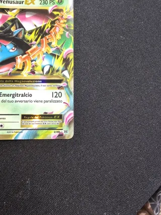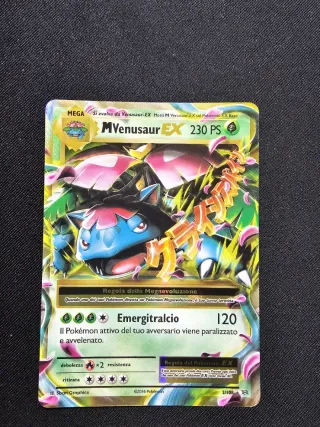 Carta Pokémon Mega Venusaur EX. - Potenza: 230 PS. - Attacco: Emergitralcio (120 danni). - Debolezza x2. - Resistenza. - Rara. - Edizione 2/108.