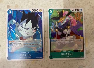 Due carte del gioco di carte di One Piece, edizione giapponese. - Carta Namul (OP08-050). - Carta Consulotte (OP08-024).