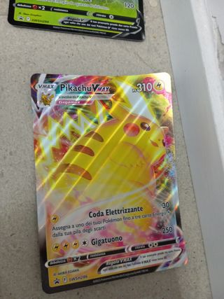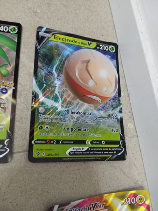 -Pikachu VMAX Gigantamax: carta olografica, in perfette condizioni. -Electrode V: carta olografica, in perfette condizioni.
