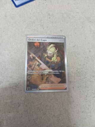 Bellissime carte Pokémon, perfette per ampliare la tua collezione! - Due carte Allenatore: Pruna e Ordini del Capo. - Sono in ottime condizioni. - Pronte per essere giocate o collezionate.