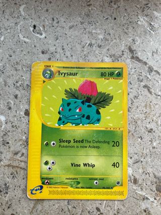Carta Pokémon Ivysaur, Stage 1. - HP: 80 - Attacco: Sleep Seed, Vine Whip - Illustratore: Miki Tanaka - Anno: 2002