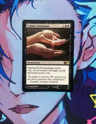 Legame Sanguigno Edizione: Magic 2014 Lingua: ITA Magic the Gathering - Tipo: Incantesimo - Testo: Ogniqualvolta guadagni punti vita, un avversario bersaglio perde altrettanti punti vita. - Anno: 2013