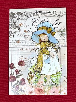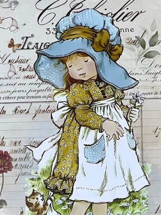 ‼️NUOVA‼️Perfetta per collezionisti. Dimensioni: 15 x 10 cm. Dall'esclusiva collezione di articoli di design di Sarah Kay. ‼️NON TRATTABILE‼️ 🔹CONSEGNA A MANO 🤝A ALGETE E SPEDIZIONI ATTRAVERSO WALLAPOP. Bellissima illustrazione vintage di una bambina con un grande cappello blu e un vestito giallo a pois. Il disegno ha uno stile acquerello su sfondo con testo antico e farfalle. - Stile artistico vintage. - Motivi di farfalle e fiori.