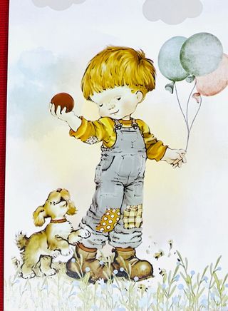 ‼️NUOVA‼️Perfetta per collezionisti. Dimensioni: 15 x 10 cm. Dalla mia collezione di articoli di design di Sarah Kay. 🔹CONSEGNA A MANO 🤝A ALGETE E SPEDIZIONI SU WALLAPOP. Bellissima illustrazione di un bambino con il suo cane e palloncini. - Stile acquerello. - Tonalità pastello e allegre. - Ideale per decorare una stanza per bambini.