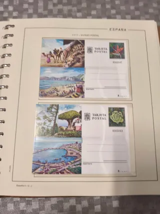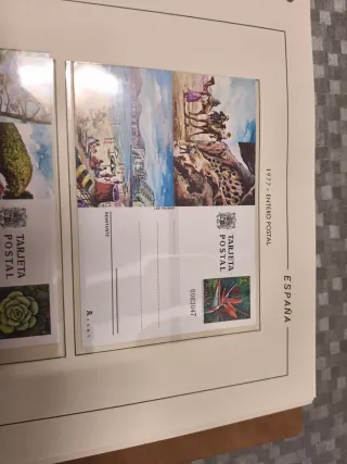 Set di cartoline postali dalla Spagna dell'anno 1972, parte della serie Intero Postal. Include foglio Filabo. Ogni cartolina presenta un'illustrazione diversa. Include francobolli e spazio per il mittente. ACQUISTANDO TUTTE LE FOGLI ESCONO A 1,50 EURO E REGALO ALBUM PELLE