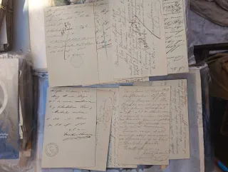 Lotto di corrispondenza d'epoca, include cartoline postali e lettere. - Materiale cartaceo originale. - Scritte a mano in , Firenze. - Alcuni francobolli e timbri visibili.8 pezzi