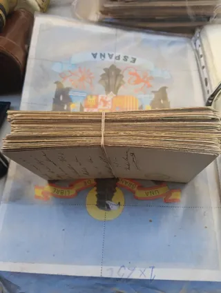 300 cartoline di corride del 1947. Mostrano illustrazioni dettagliate di toreri e tori. Prezzo per cartolina 5 euro. Per lotto accetto offerte. Sono cartoline (cartoline postali). - Cartoline della Plaza de Toros Monumental di Barcellona. - Cartoline della Plaza de Toros di Linares. - Includono nomi di toreri come Manolete, Domingun, Paco Camino e Antonio Ordóñez. - Mostrano ganaderías come D. Eduardo Miura e D. Antonio Sánchez Ortiz de Urbino. Misure 10,5x21cm.