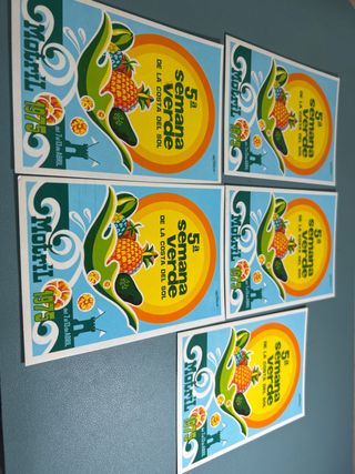 Set di 5 cartoline commemorative della 5ª Settimana Verde di Motril nel 1975. - Design con frutta tropicale e il motto Dalla Costa del Sol. - Data: dal 7 al 13 aprile. - Include l'immagine di una torre o castello. Prezzo per il lotto.