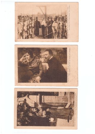 Vendo n.10 cartoline postali d’epoca mai utilizzate per la spedizione risalenti probabilmente tra il 1914 e il 1923. Prive di segni particolari e/o d’inchiostro. Mostrano solo un’usura coerente con l’età e la conservazione. Si riferiscono ad alcune scene tratte dall’opera cinematografica Guglielmo Oberdan del 1915 prodotta dalla casa cinematografica italiana TIBER FILM, fondata a Roma nel 1914, attiva all’epoca del cinema muto. Le cartoline sono stampate da IPA CT Duplex – Terni.