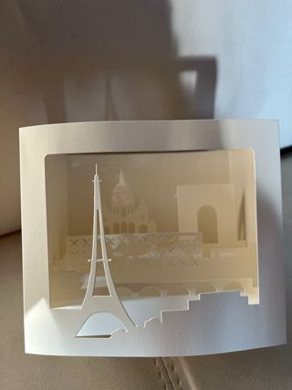 Cartolina pop-up tridimensionale con panorama di Parigi. - Silhouette di monumenti parigini. - Effetto a più livelli.