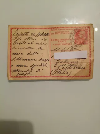 Cartolina postale spedita da Trieste per Castrocaro nel 1900. - Scritta a mano. - Dettagli del timbro postale austriaco. - condizioni come da foto.