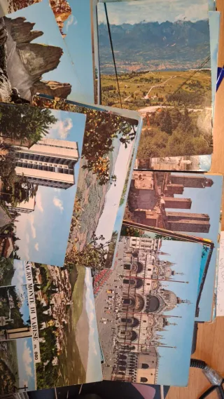 Bellissimo lotto di cartoline vintage della Valle d'Aosta. Perfette per collezionisti o amanti della montagna. - 392 cartoline in totale: 6 piccole di cui 3 viaggiate dal 1917 al 25. 132 bianco e nero grandi di cui 97 viaggiate anni 30/60. 254 a colori e acquerellate di cui 157 viaggiate anni 60/2000. - Motivi vari: paesaggi, montagne, borghi - Alcune in bianco e nero, altre a colori - Ottimo stato di conservazione, in alcune presenti piccoli difetti a bordi e/o angoli o bollo asportato