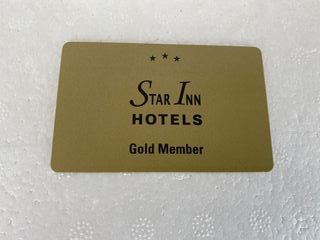 Chiave elettronica Gold Member per Star Inn Hotels. - Design elegante color oro. - Logo Star Inn Hotels con tre stelle. - Scritta Gold Member in evidenza.