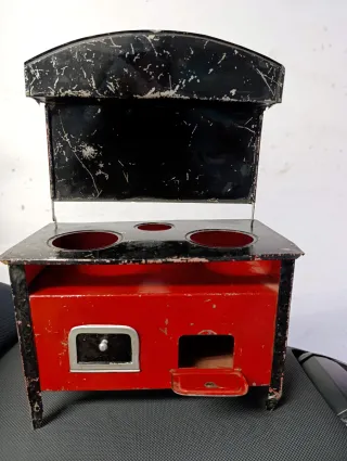 Deliziosa cucina a carbone, perfetta per una casa delle bambole. Questo giocattolo vintage aggiunge un tocco speciale a qualsiasi collezione. Design classico in rosso e nero. Porta del forno con maniglia. Scomparto inferiore con coperchio ribaltabile. Chiaramente necessita di restauro. Consegna a Granada nelle zone di PTS e Serrallo.