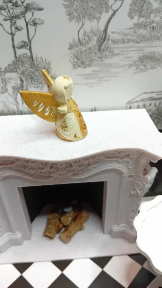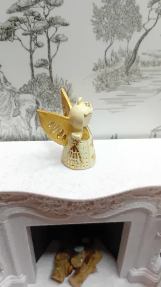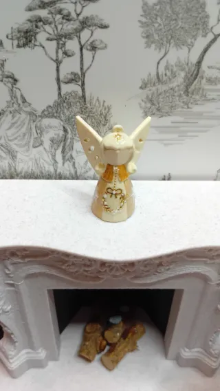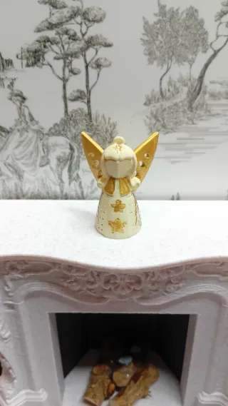 Angelo decorativo di Natale in stile Shabby per casa delle bambole. Stampa 3D. Misura altezza cm 2,5 diametro base cm 1,1.