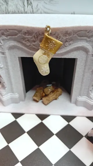 Calza natalizia decorata per casa delle bambole. Stampa 3D. Lunga cm 3 fiocchi di neve.
