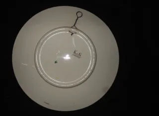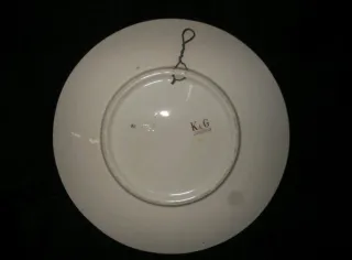 Piatto terraglia con Militari Soldati Nos Réservistes K. & G. Luneville (c) V2 Misure: diametro cm. 20 - peso gr. 260. °Piatto decorativo in terraglia con un disegno di soldati in uniforme. L'iscrizione in francese Nos Réservistes si traduce come I nostri riservisti. - Disegno di due soldati in uniforme. - Iscrizione Nos Réservistes in francese. - Realizzato in terraglia.