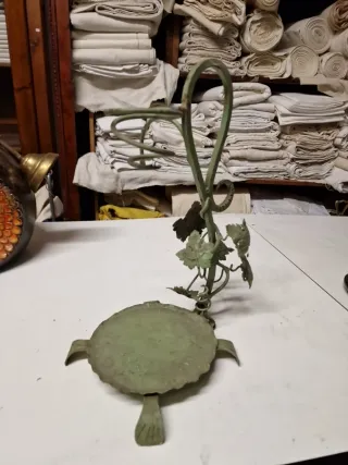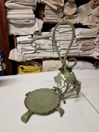 Porta Bottiglia Decanter Ferro Foglie Vite Sec. XX. H. Cm. 35 SGR.1 ^peso gr. 1012 condizioni: buone da pulire Un pezzo unico che aggiunge un tocco di classe alla tua tavola. - Realizzato in ferro battuto. - Design con foglie e vite. - Stile vintage del XX secolo.