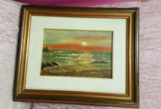 Luciana Tocchi Sec. XX "Tramonto" olio cartone telato Tokio 20x25 cornice C12 peso gr. 2150 Condizioni: ottime^ Opera Tramonto di Luciana Tocchi, risalente al XX secolo. Tecnica mista olio su cartone. - Soggetto: paesaggio marino al tramonto. - Cornice dorata inclusa.