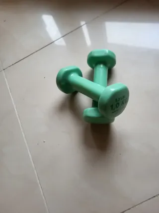 Coppia di pesetti verdi, ideali per allenamenti a casa. - Colore: verde - Materiale: rivestimento esterno
