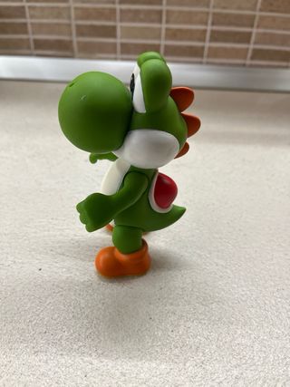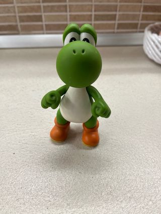 Statua di Yoshi, personaggio iconico dei videogiochi Nintendo. - Colore verde brillante. - Dettagli bianchi sul petto e sugli occhi. - Stivali arancioni con suola gialla.
