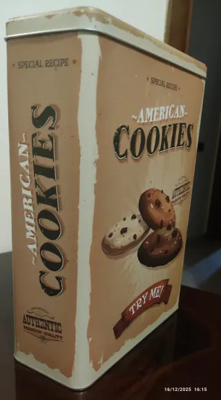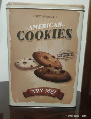 Elegante contenitore/ Barattolo in latta, perfetto per conservare biscotti o altri piccoli oggetti. Il design vintage American Cookies aggiunge un tocco retrò alla tua cucina o alla tua casa. Misure: 26,5 cm x 19 cm x 8 cm