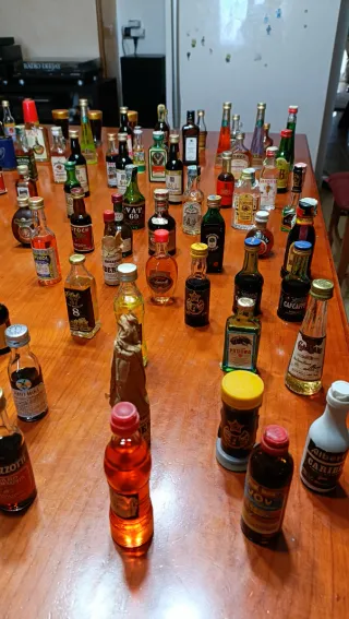 Ampia collezione di bottigliette di liquore di varie marche e tipologie. - Diverse dimensioni e forme. - Ideali per collezionisti o per un regalo originale. - Perfette per arredare o per un angolo bar.