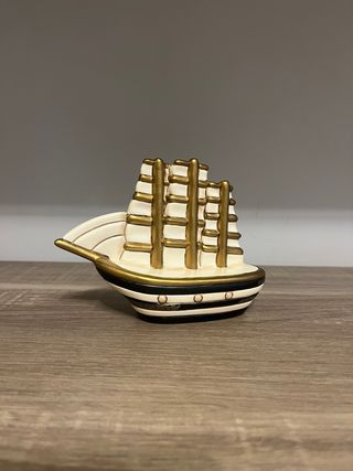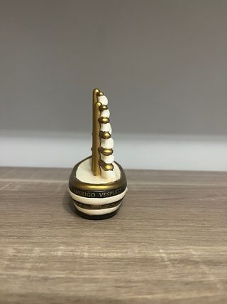 Modellino della nave Amerigo Vespucci, edizione limitata Thun. Tour mondiale 2023 2025 - Design ispirato alla storica nave. - Dettagli in oro e bianco. - Base con strisce nere e dorate.